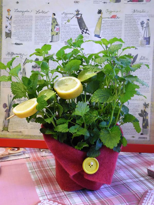 Sie lassen sich leicht zu wunderbaren Kompositionen verarbeiten - eine Tafel draußen unter Bäumen oder auf Ihrer Terrasse, leichtes Leinen und schönes Tafelbesteck. Dazu Silberschalen, die mit Bauernrosen, Clematisranken und duftenden Kräutern gesteckt sind. Kleine Kräutersträußchen werden mit Zitronengras um Leinenservietten gewickelt, so bekommt jeder Gast noch ein Geschenk mit nach Hause. Einzelne Kräutertöpfe bekommen ein farbiges Fließkleidchen an, die mit bunten Knöpfen verziert werden. Dazwischen kleine Sträußchen aus Bauernrosen und Minze zaubern farbliche Akzente. Wenn dann der Grillmeister seine Spezialitäten auftischt, wünschen wir nur noch " Guten Appetit ".