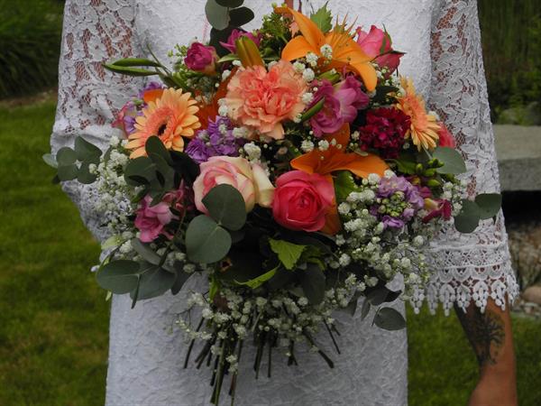 Die passende Location ist am besten draußen unter freiem Himmel, wo das Brautpaar mit seinen Gästen ganz ungezwungen feiern kann. Die Farben der Blumen können Ton in Ton abgestimmt sein oder auch so richtig bunt. Leicht, locker und fröhlich, wie es eine Hippie - Hochzeit eben zulässt.